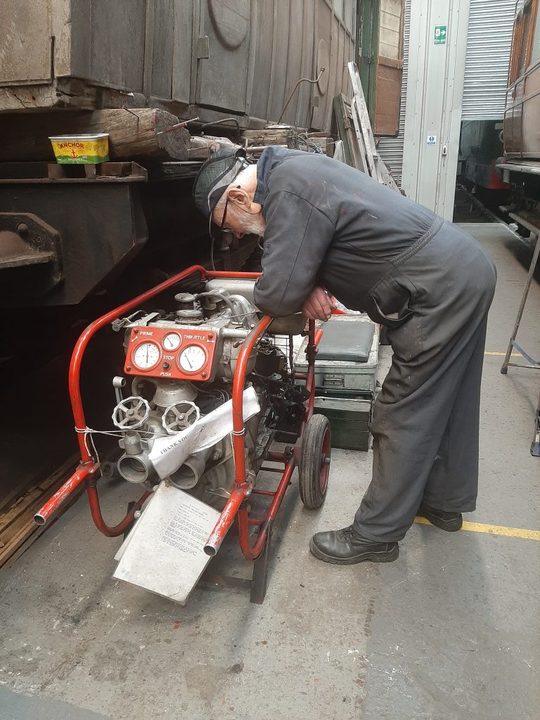 At 14.45 on Friday, the peace of the FRT shed was shattered without warning by the earthy roar of a Coventry Climax engine, announcing to all that the three days of work that Roger had expended on the fire pump had been successful. Well done, Roger! We now need to see how the machine copes with washing out a locomotive boiler!