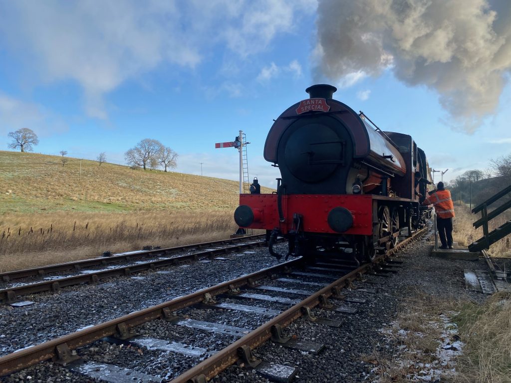 Both GWR 0-6-2T 5643 and ‘Austerity’ 0-6-0ST Cumbria were due to haul trains at Bury and Embsay respectively over the weekend and we are pleased to be able to include some seasonal photos of Cumbria in action courtesy of Matt Anderson of the Embsay & Bolton Abbey Steam Railway……