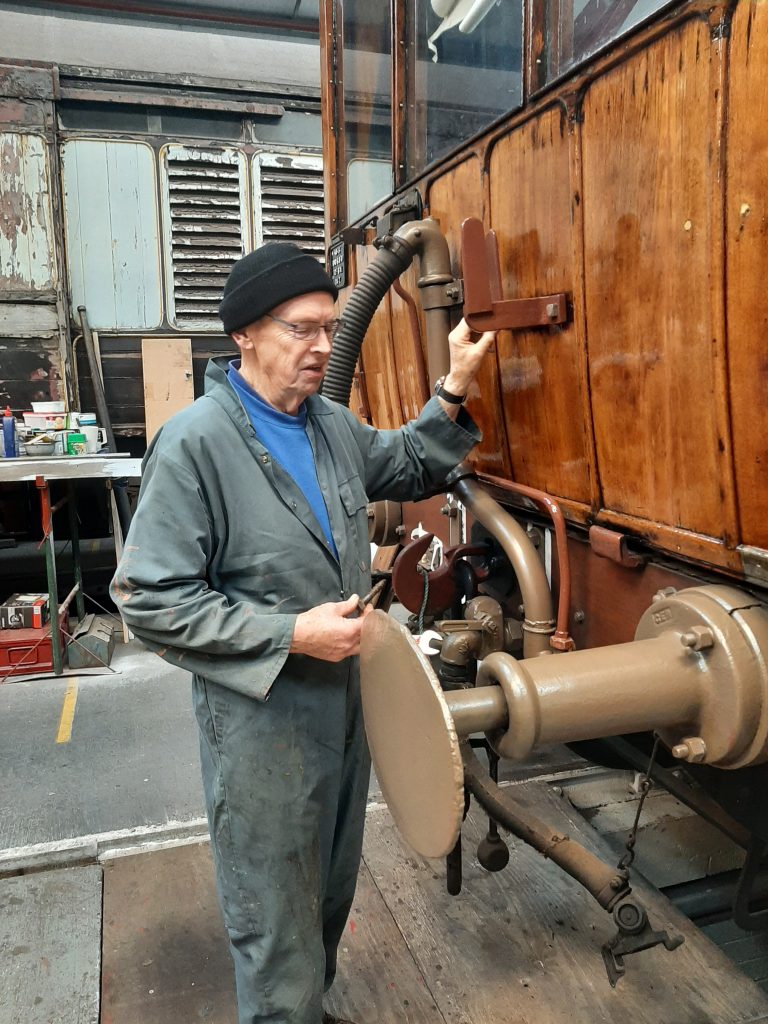 We have also seen further progress on the overhaul of Great Eastern Railway Royal Saloon No. 5 where John Dixon has been replacing grab handles, lamp holders and the like to the exterior of the vehicle.