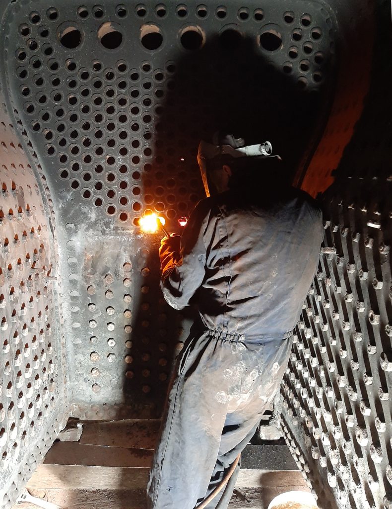 Andy Booth made a start on removing the old tubes from 5643’s boiler on Friday, cutting them from the firebox end first.