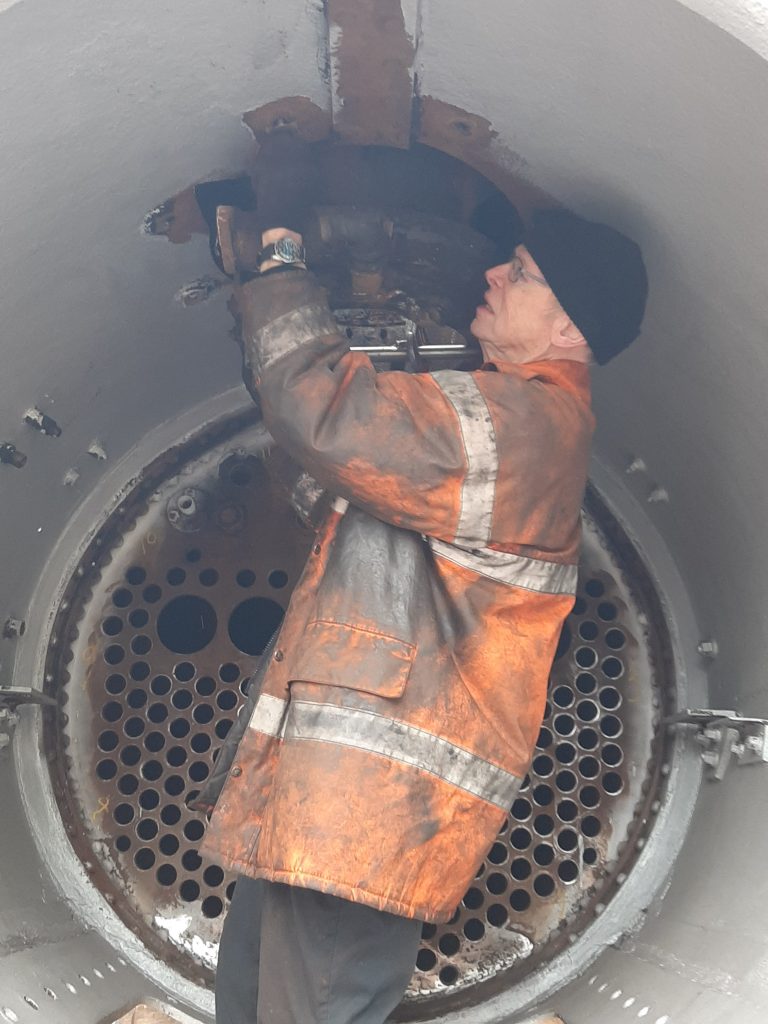 Last Wednesday saw FR 20 being given a boiler washout in preparation for its forthcoming cold inspection by the boiler surveyor on the 3rd May. Sam was in charge with the hose.